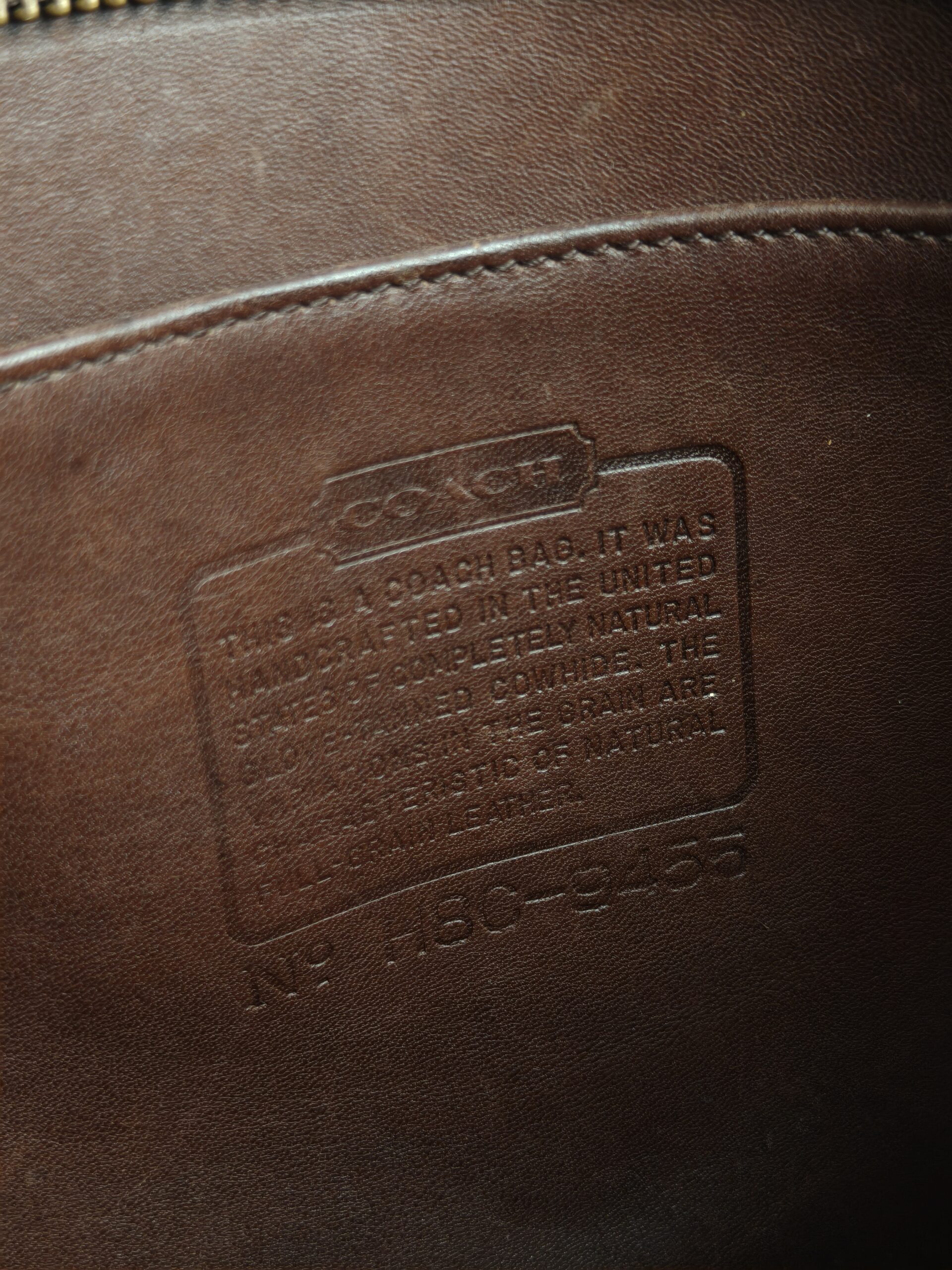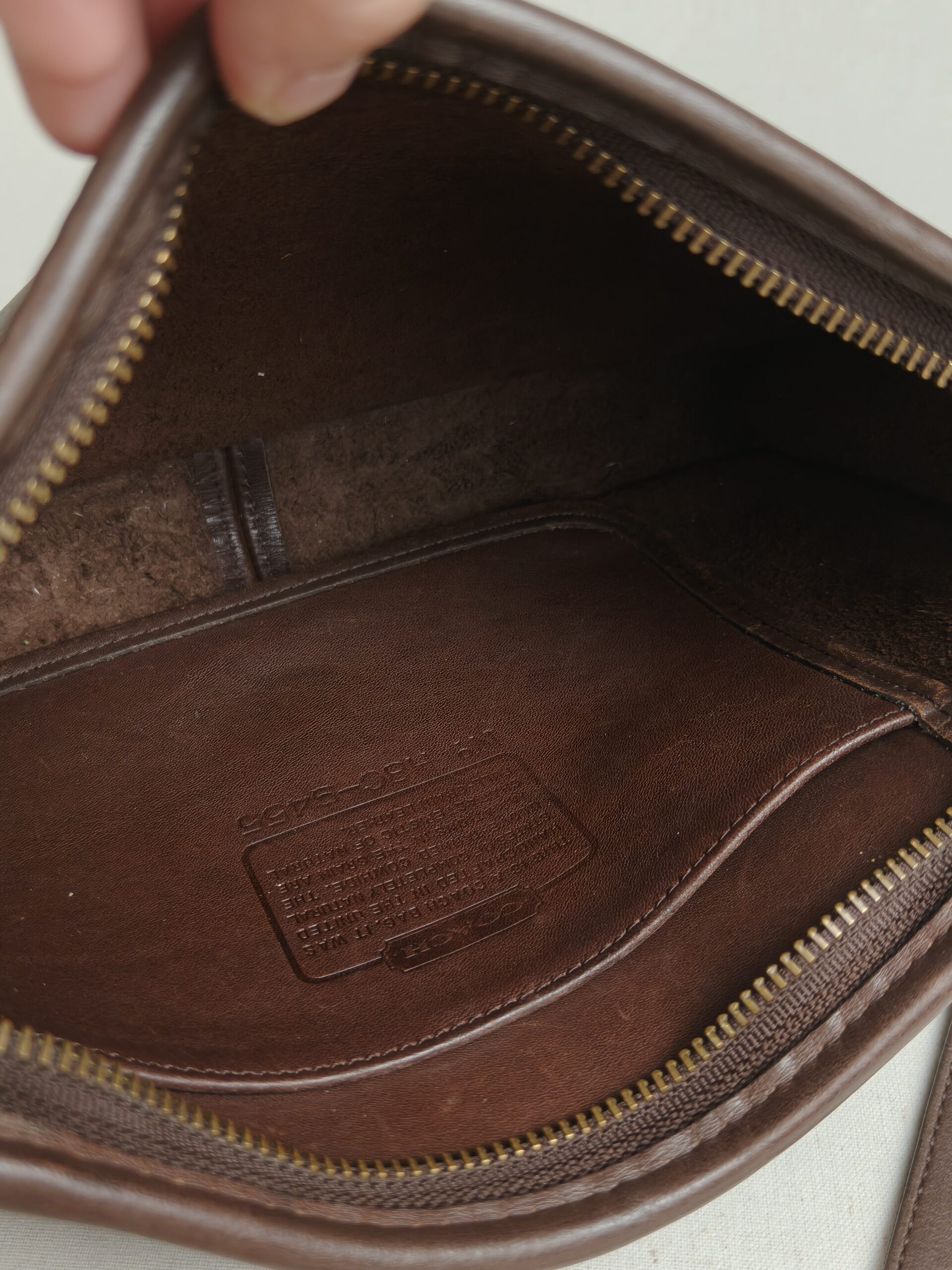 2 compartments inside with coach creed.